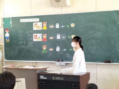 「すききらい」しないでいろいろなものを食べる大切さをわかりやすくおしえていただきました。