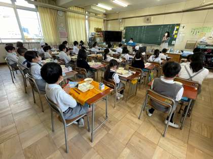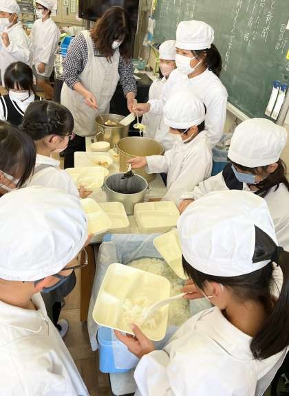 給食時間に間に合って戻ってきた 3年生です。