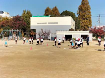 ポートボール、バスケットボールにつながっていくボールのゲームを楽しくしています。