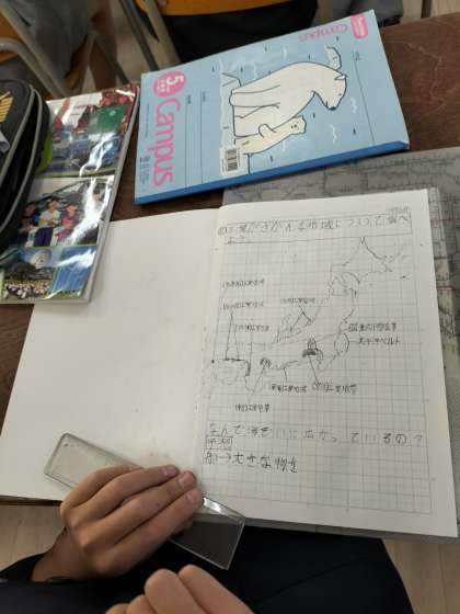 日本の工業についての学習です。工業が盛んな地域はどこで、どうして盛んなのかを調べています。