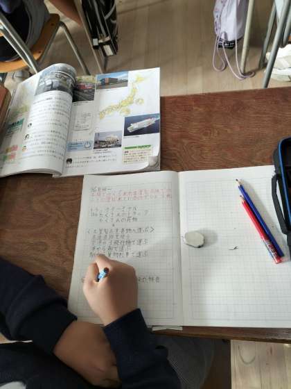 工場で作られた製品は、どのように運ばれているのか調べています。
