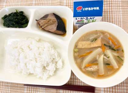今日の献立は、ごはん・なまりぶしのしょうが煮・じゃがいものみそ汁・ほうれん草のおひたし・牛乳です。