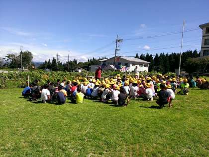 大切な避難訓練で、おしゃべりしたり、ふざけたりは許されません。やり直しをした班もありましたが、最後にはどの班も、全員静かに、整然と避難することができました。