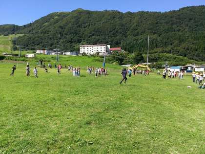 避難訓練を終え、広場での自由時間です。