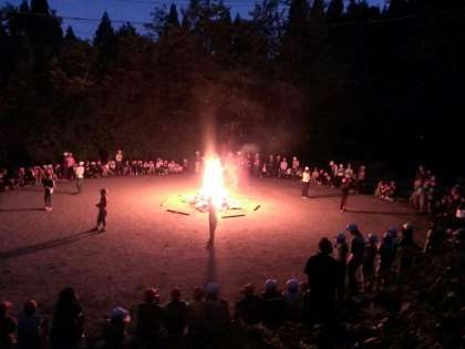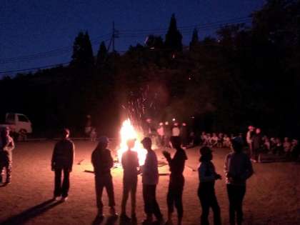 キャンプファイヤーでは、歌ったり、踊ったり、大いに盛り上がっています。