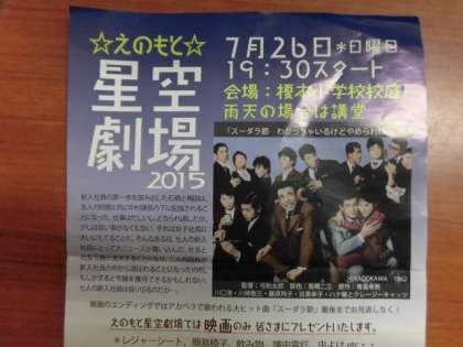 ハチ高原で、キャンプファイヤーの炎が天を焦がしているころ、榎本小学校の校庭では、榎本地域主催の「えのもと星空劇場」が開催されていました。