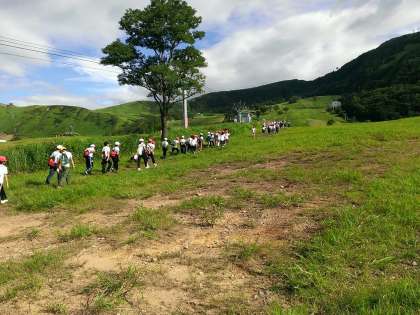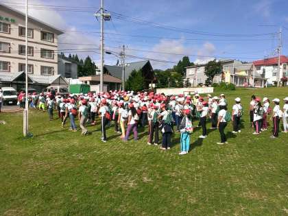 まずはここで、クラスごとに集合写真を撮り、そのあと、活動班ごとに出発します。