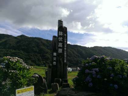 山登りのスタート地点は、ハチ高原のモニュメント前です。