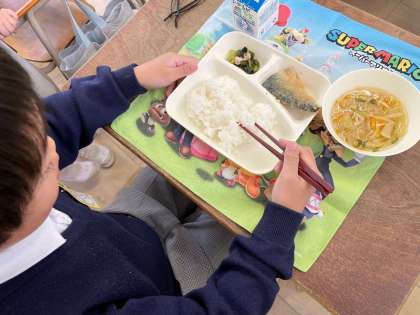 お待ちかねの 給食の時間です。