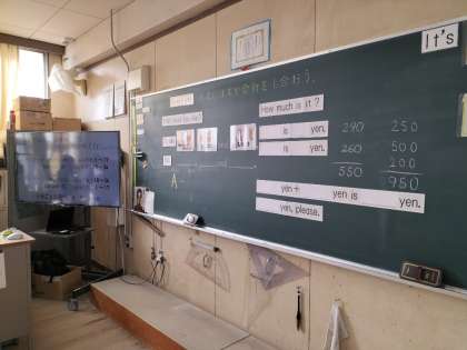 買い物をしているときのやり取りを英語でしています。お店の人の役割のときもしっかりと答えています。