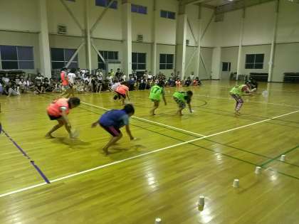 楽しい競技が工夫されていますが、みんな結構真剣な表情で取り組んでいます。