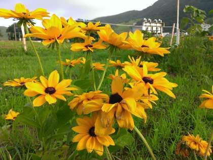 かわいらしい花々が、朝露に濡れながらゆれています。