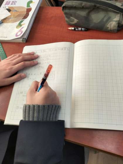 いろいろな場面で、比例の関係を使って数値を求める学習です。よく考えて、計算ミスもしないように取り組んでいます。