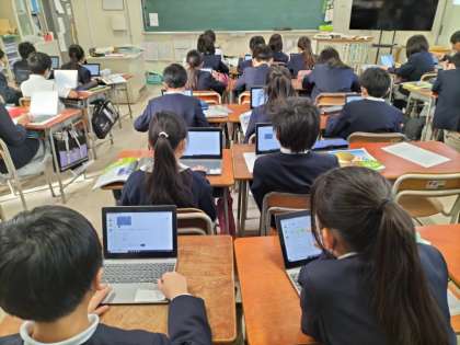 デジタルドリルを活用して、2学期までの学習の復讐をしています。みんな慣れた手つきでタブレットを使っています。