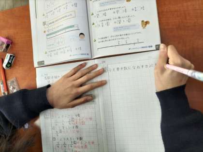 分数の学習です。仮分数や帯分数に表したり、帯分数を仮分数に表したりすることができました。