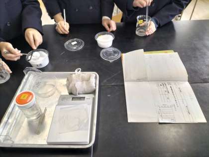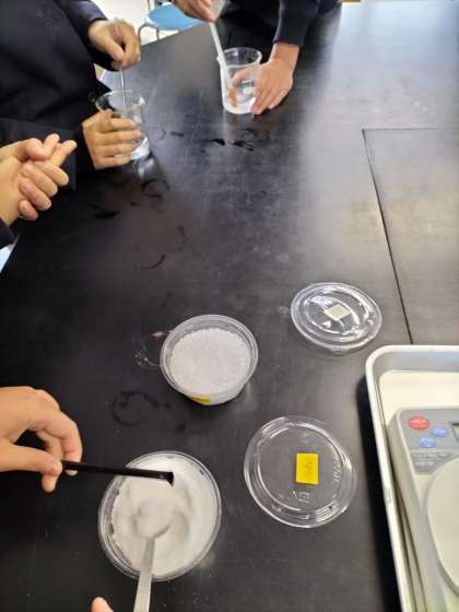 もののとけ方について学習しています。食塩やミョウバンを使って実験しています。