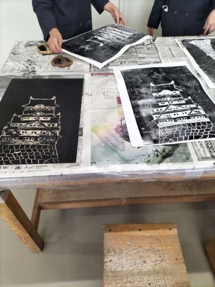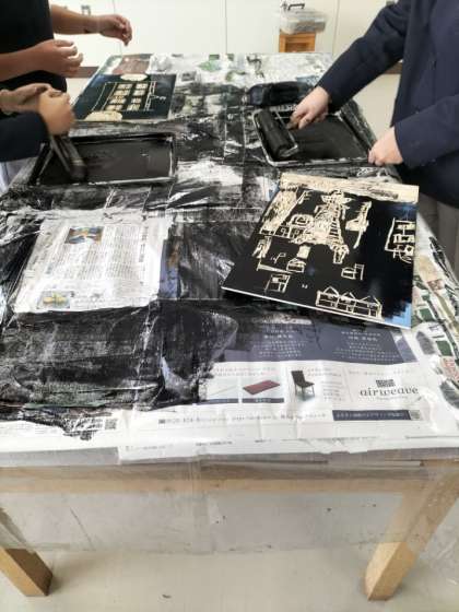 版画の作品を仕上げています。手にインクが付くこともありましたが、立派な作品が出来上がりました。