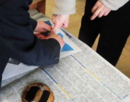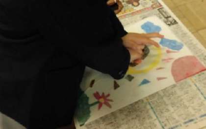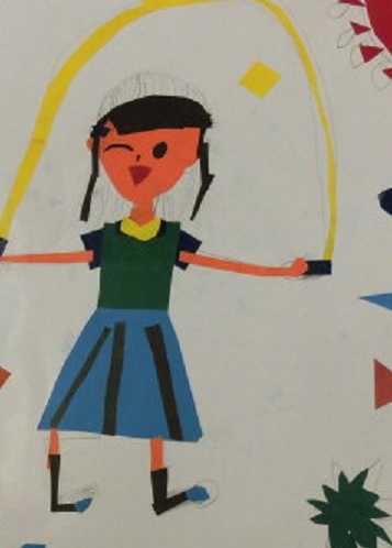 濡れると色がつく紙をハサミで上手に切って縄跳びをしている自分を作りました。