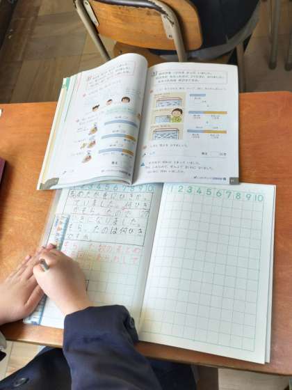 自分で図を描いて問題を解きます。もらった数をどのように表すかはなかなか難しいですが、しっかりと考えています。