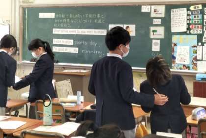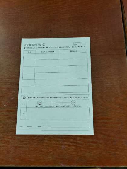 中学校で楽しみたい学校行事や得意なことをインタビューしました。みんなすらすらと答えていました。