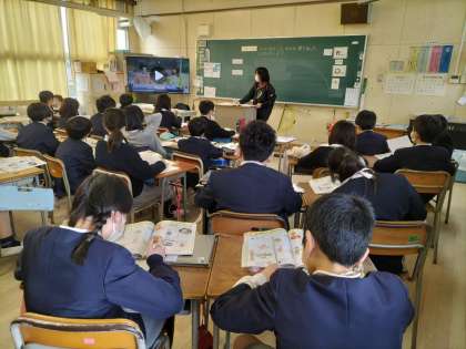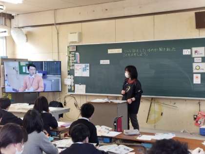 ビデオの映像を見て、どんなお話をしているか聞き取っています。なかなか難しいですが、子どもたちはよく聞いていました。