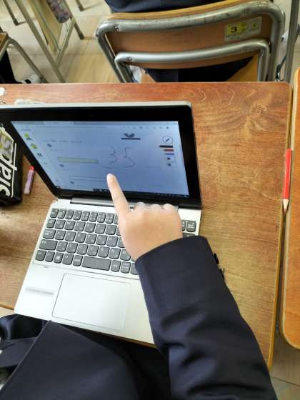 デジタルドリルで復習をしています。短い時間にどんどん問題を解いています。