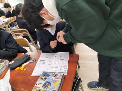 電流の学習で使う教材の準備をしています。なかなかうまくいかないところもありますが、みんなで協力しながらすすめています。