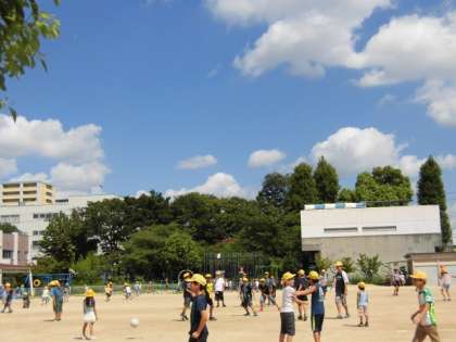 始業式の日の休憩時間、子どもたちはさっそく運動場に飛び出して、思いっきり体を動かしていました。