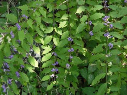夏の花、スイレンが咲く近くで、ムラサキシキブが秋らしい色づきを見せはじめています。朝夕のえの森には、すずしい風が吹きわたり、秋がそこまで来ていることを感じさせてくれます。