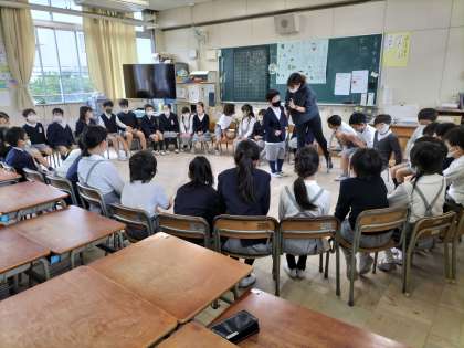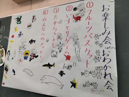 修了式の前日です。お楽しみ会をしています。みんななかよくなりました。楽しい時間を過ごしました。