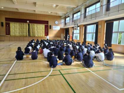 始業式の後はクラス分けです。みんなドキドキしながら、それぞれの学年の先生のお話を聞きました。
