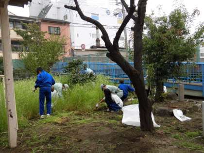 朝は雨が降って来る前に、プール横の中庭の草抜きをしてくれました。さすが中学生。みるみるうちに草がなくなっていきます。頼もしい限りです。