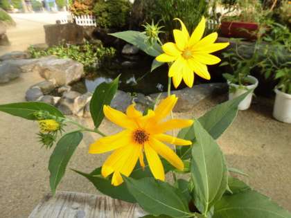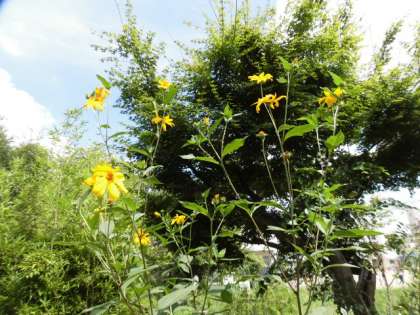 9月2日の記事で紹介した名前のわからない花。「野草・雑草の事典」という本で調べたところ、「菊芋(キクイモ)」というようです。