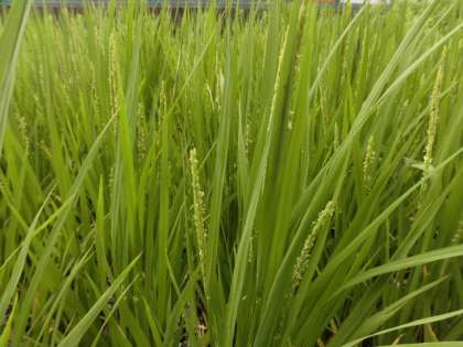 田んぼでは、出穂の始まった榎本米に、イネの花が咲いています。