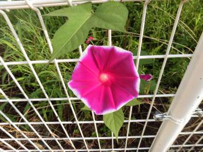 一昨年苗をいただいてから、タネをとって育てている「溥傑(ふけつ)の朝顔」も、思い出したかのように咲いています。