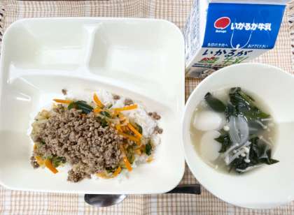 今日の献立は、ビビンバ・トック・牛乳です。