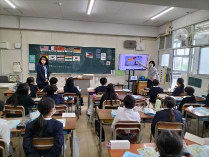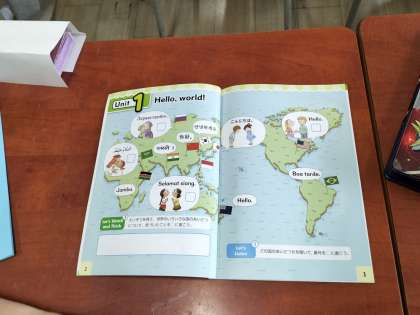 今年度から赴任してきたC-NETの先生と元気にあいさつをして、楽しく学習しています。