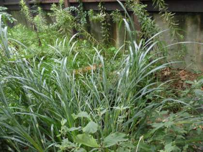 えの森の北の端で、ススキとヒガンバナが芽を出しています。