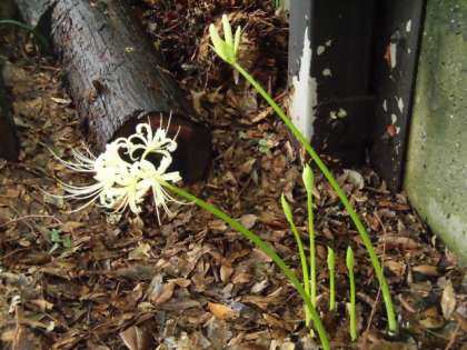 3枚目は、花のつきだした白いヒガンバナです。