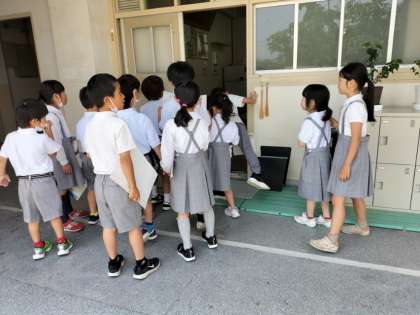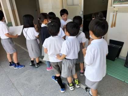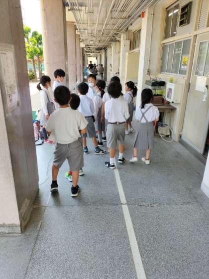 2年生が1年生とグループになって、学校を案内しました。やさしく案内している2年生の姿と話をしっかり聞いている1年生の姿がとても微笑ましかったです。
