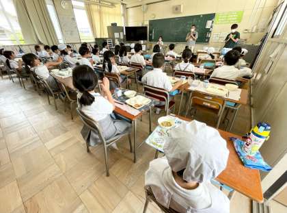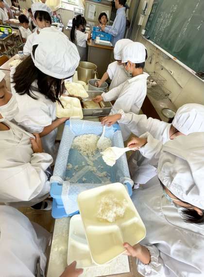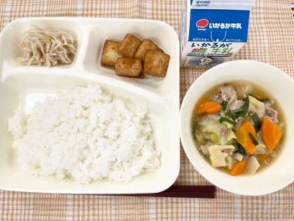 今日の献立は、ごはん・あつあげのピリ辛じょうゆかけ・もやしの中華あえ・牛乳です。