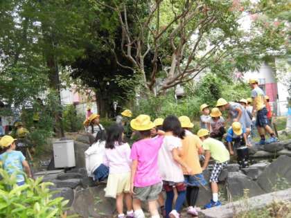 子どもたちが騒いでいるのに、まったく逃げようとしないのです。何をしに来たのでしょうね?