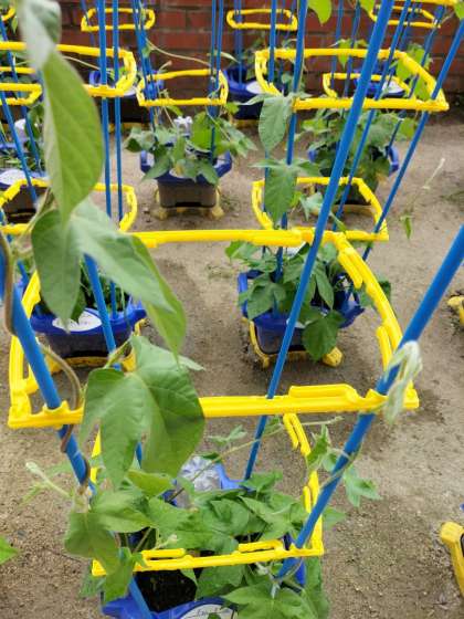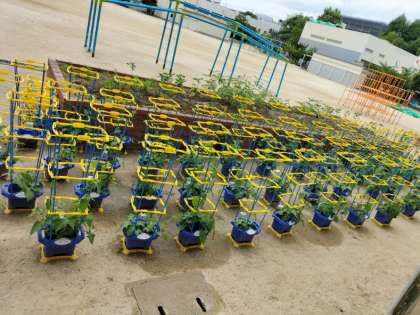 最近の暑さと子どもたちの毎日の水やりでアサガオがとても大きくなりました。ツルも伸びています。花が咲くのももうすぐです。