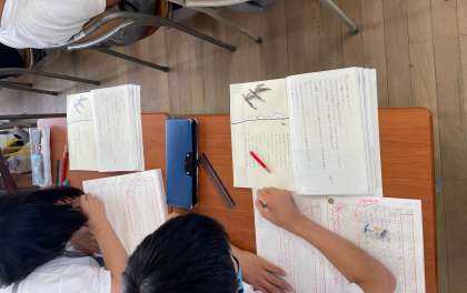 「風切るつばさ」の結末の場面を学習しました。クルルの心情の変化について、人物関係図に心内語を書き込んだり、全体で交流したりました。発表も意欲的にがんばっていました!
