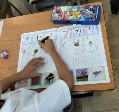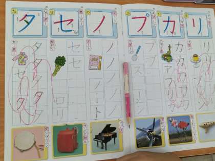 カタカナの学習が進んでいます。書くときに気をつけるところをしっかり守って、ていねいに書いています。