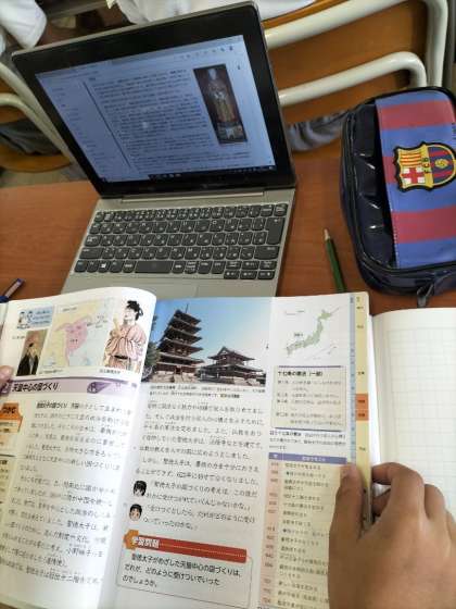 聖徳太子の時代を学習しています。タブレットも活用していろいろ調べています。
