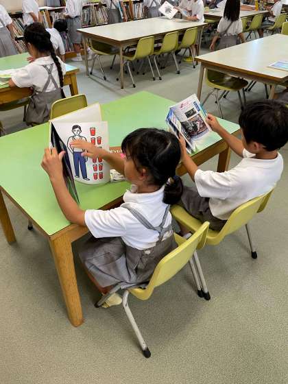 朝の読書『朝読(あさどく)』の時間や図書の時間には色んな本を選んで読んでいます。