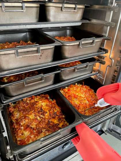 おいもとベーコンを合わせて チーズをのせて焼き上げます。
