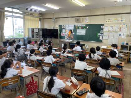にんじんや、なすびなどの野菜を、色の濃い野菜と薄い野菜の2つのグループに分けてみました。見た目は色が濃くても、切ってみると色はどうかな?予想しながら分類しました。野菜のはたらきをたくさん知りました。