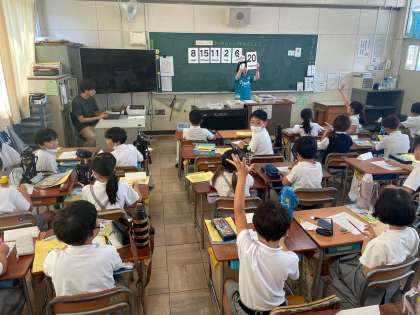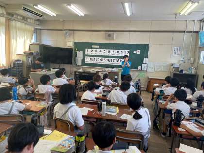 1〜20までの数字を使って英語でビンゴゲームをしました。自分が書いた数字が読み上げられると赤色で〇をします。ビンゴになると嬉しいね!